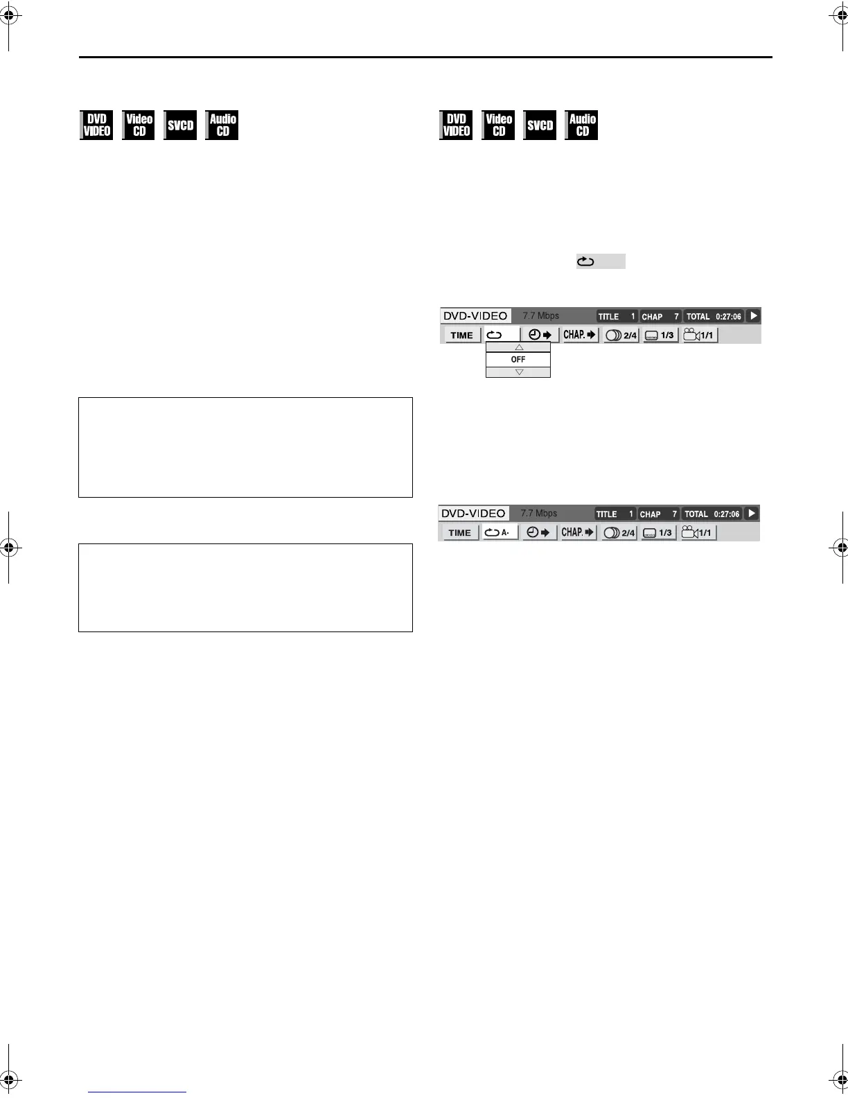 ● Repeat Playback is not possible with a Video CD and SVCD