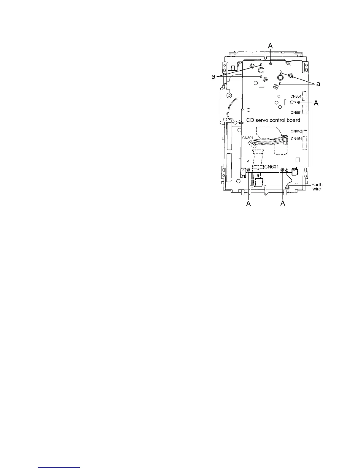 bly,remove the four screws A retaining the CD servo con-