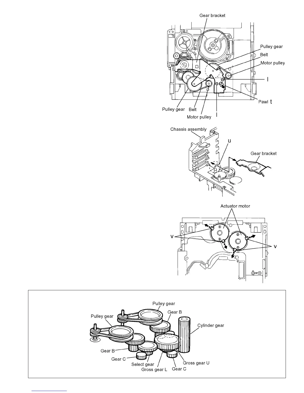 tions wherein the gear bracket and belt have been removed,