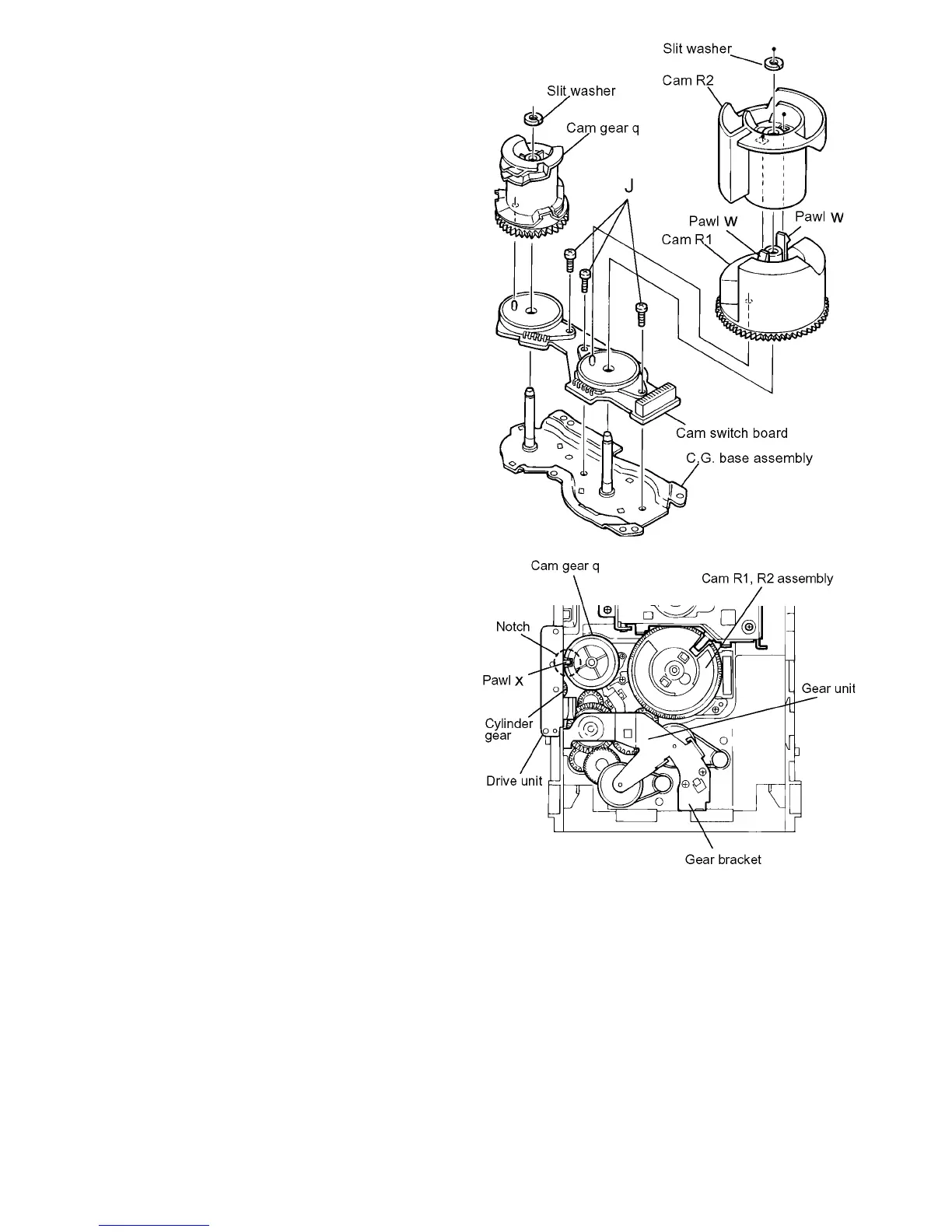 (1) Remove the slit washer fixing the cams R1 and R2 assem-