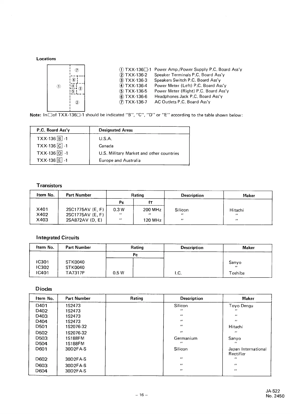 JVC JA-S22 - TXX-136 PCB Component Lists