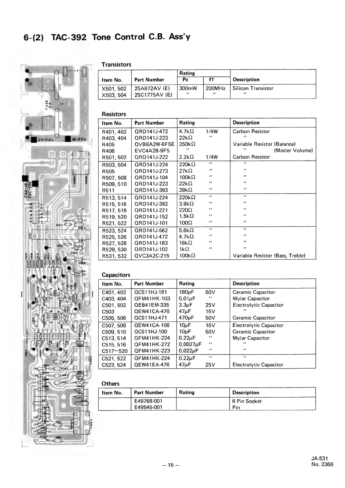 JVC JA-S31 - Tone Control Circuit Board (TAC-392)