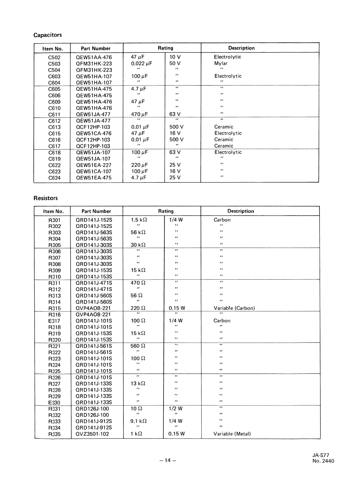 JVC JA-S77 - Resistors List