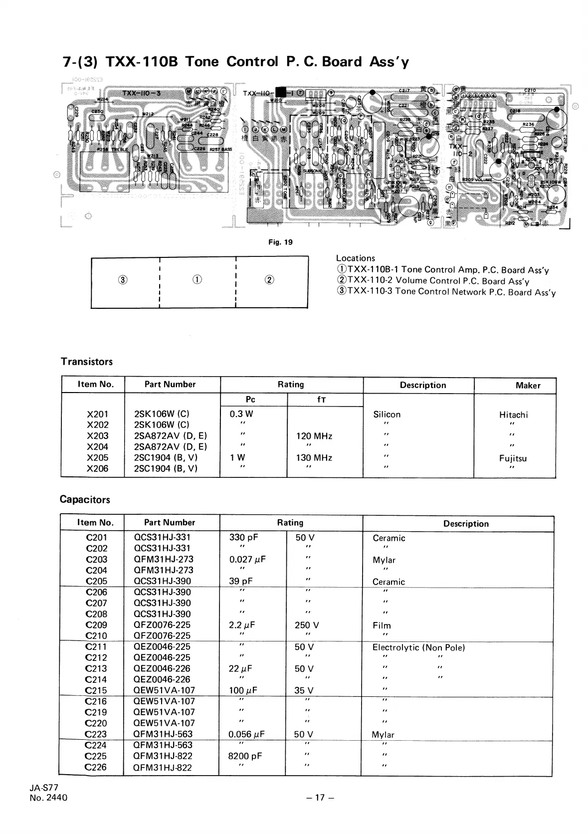 JVC JA-S77 - 7. Printed Circuit Board Assemblies and Parts; TXX-110 Tone Control PCB Layout and Parts