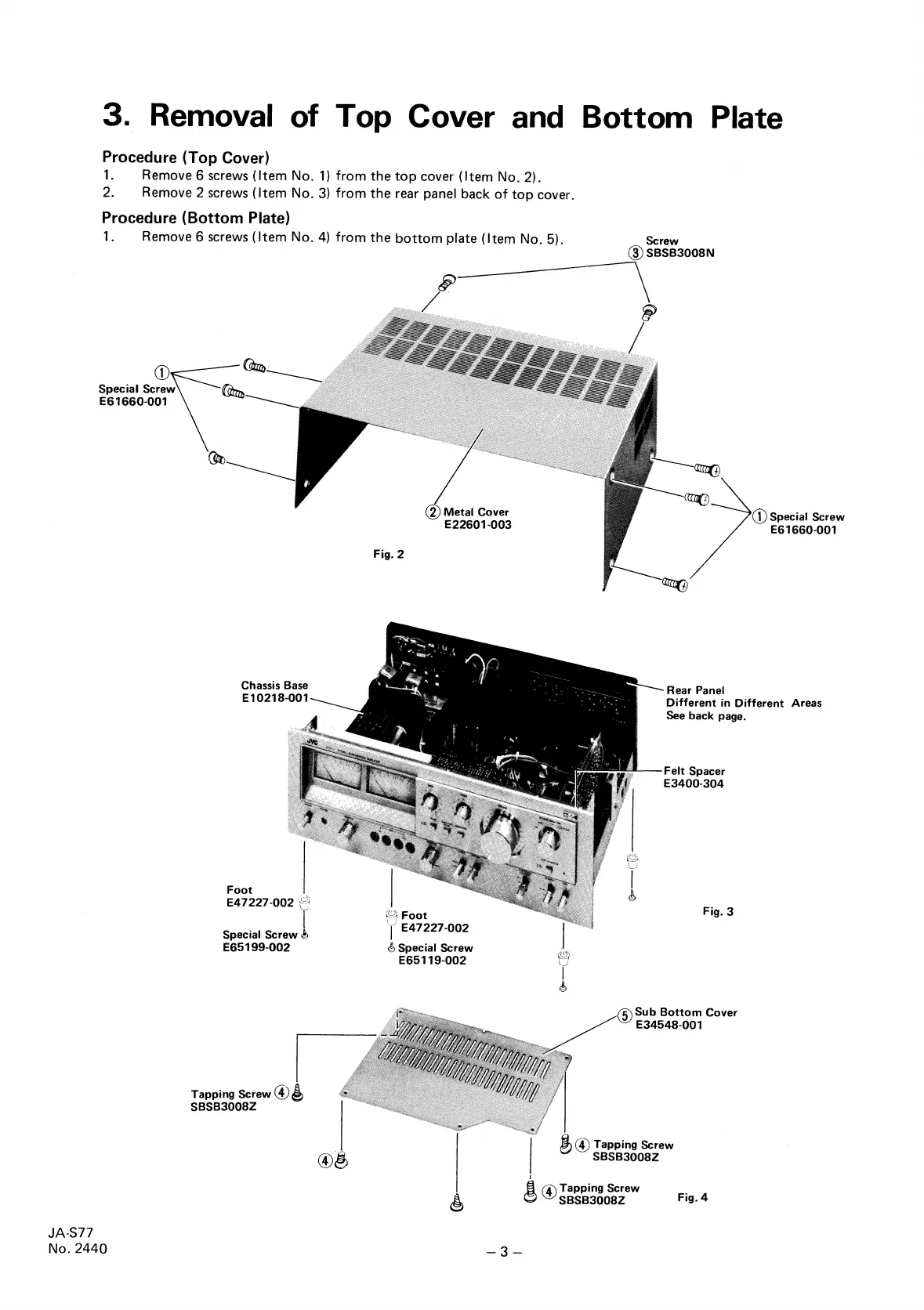 JVC JA-S77 - 3. Disassembly Procedures; Top Cover and Bottom Plate Removal