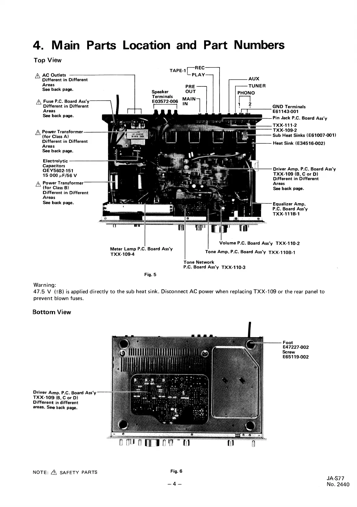 JVC JA-S77 - 4. Main Parts Location and Identification; Top View Component Identification; Bottom View Component Identification