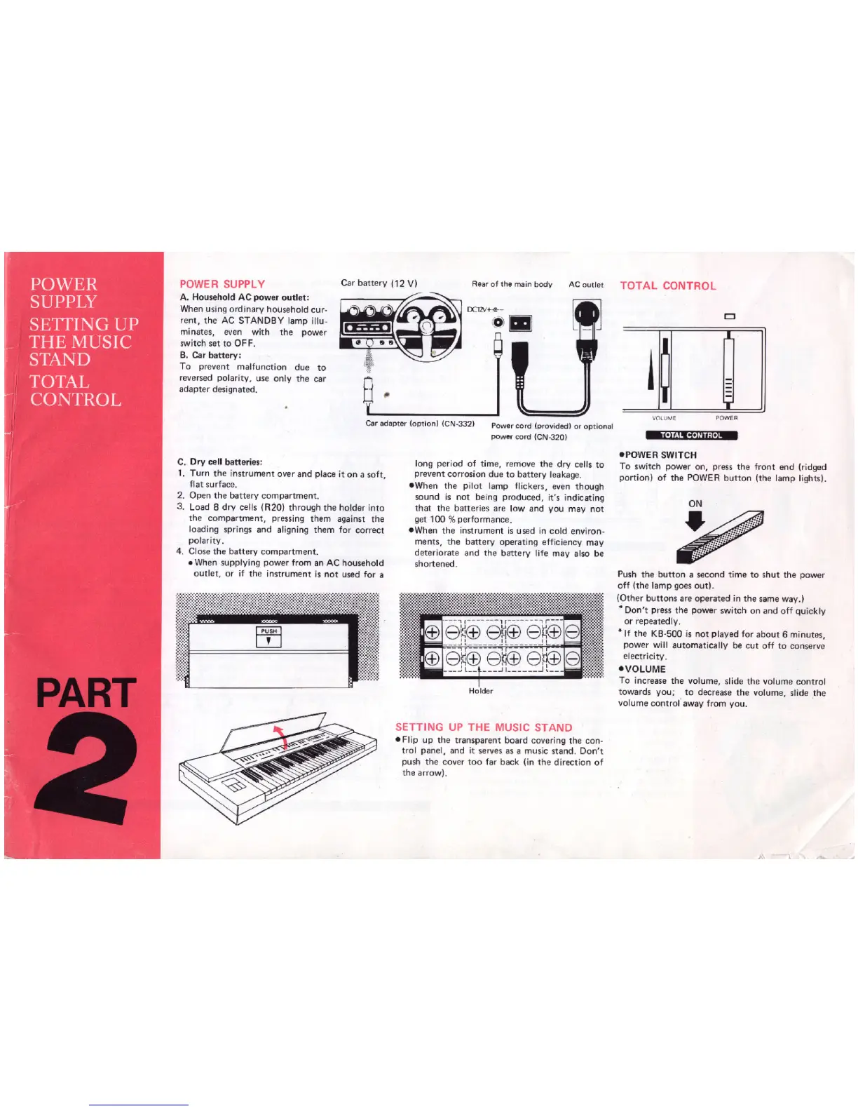 JVC KB-500 - Power Supply; Setting up the Music Stand; Total Control