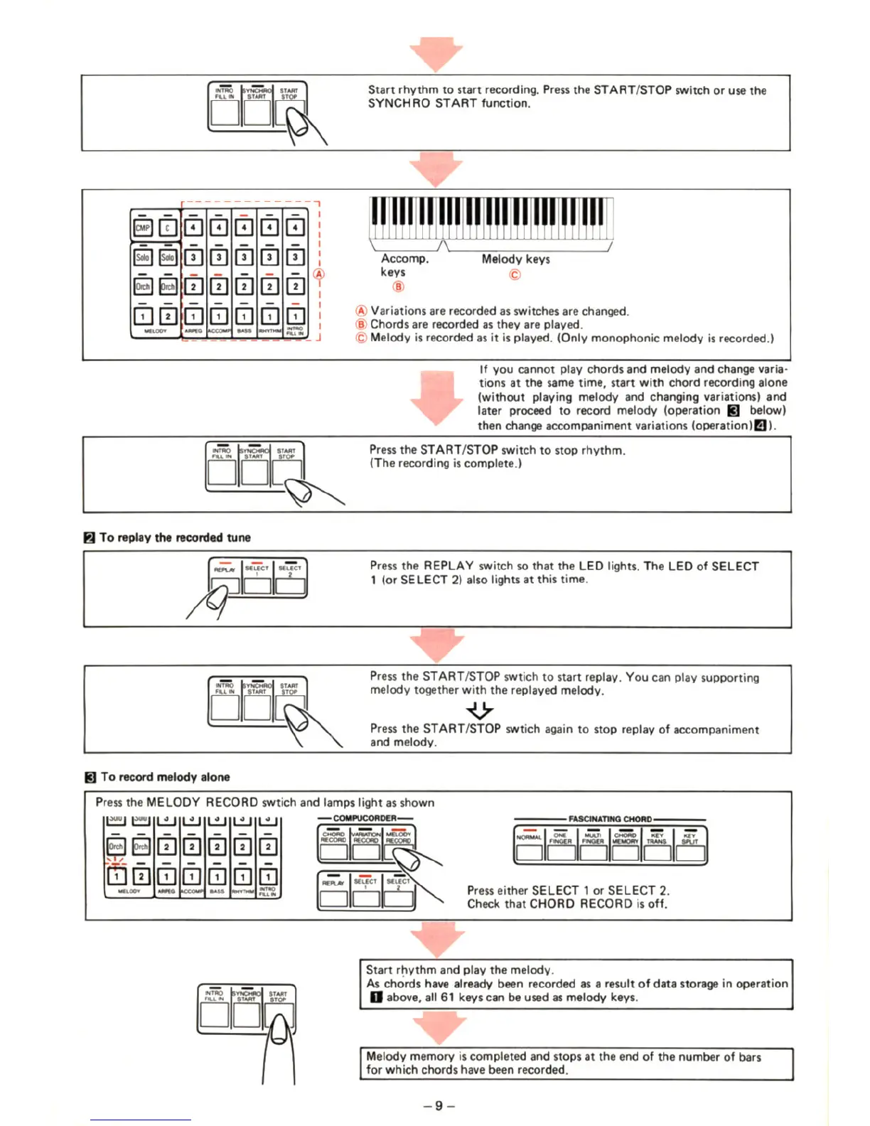 JVC KB-800 - To Replay the Recorded Tune; To Record Melody Alone