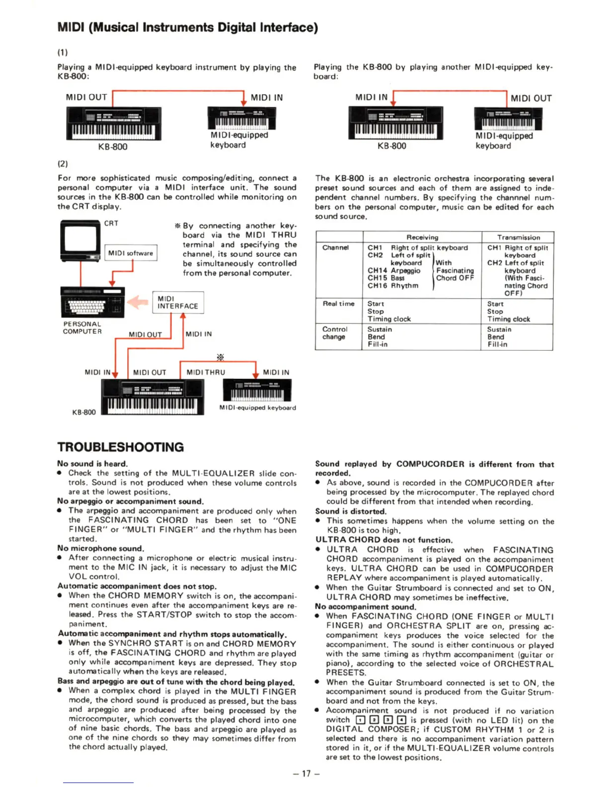 JVC KB-800 - MIDI; Troubleshooting; No Sound Is Heard; No Microphone Sound