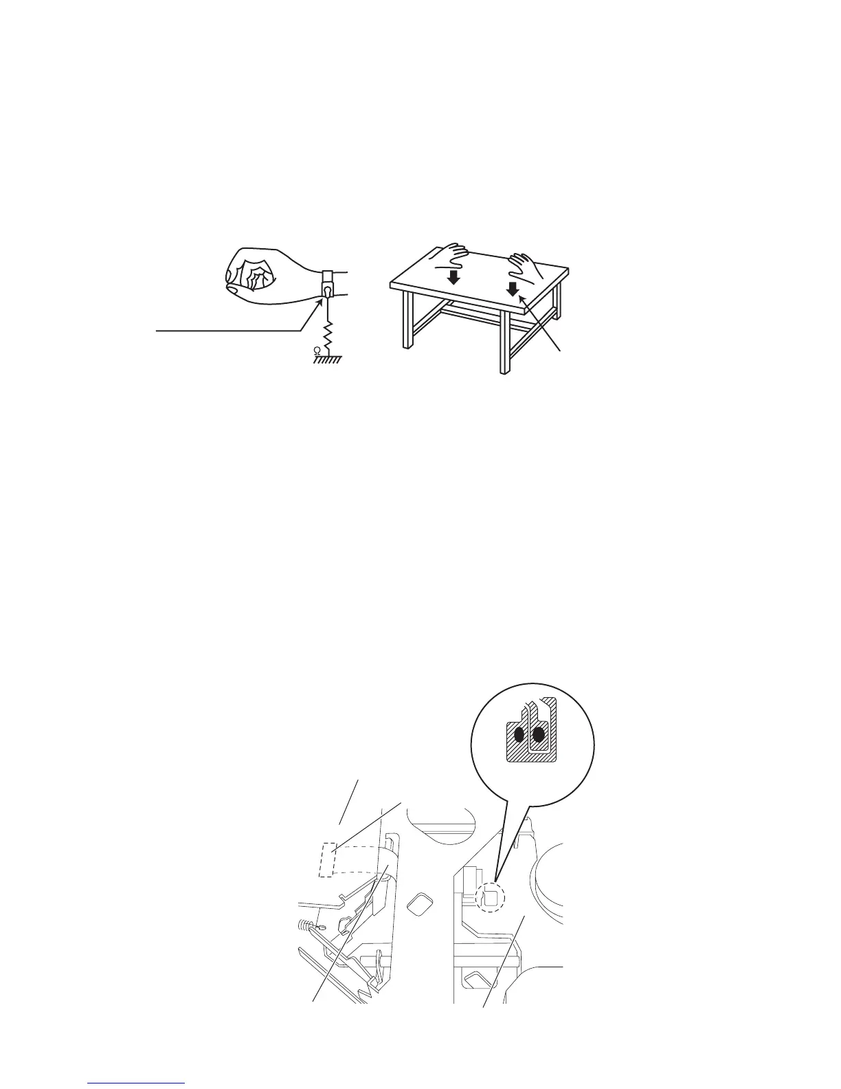 diode in the traverse unit (optical pickup). Take care to prevent this when performing repairs.