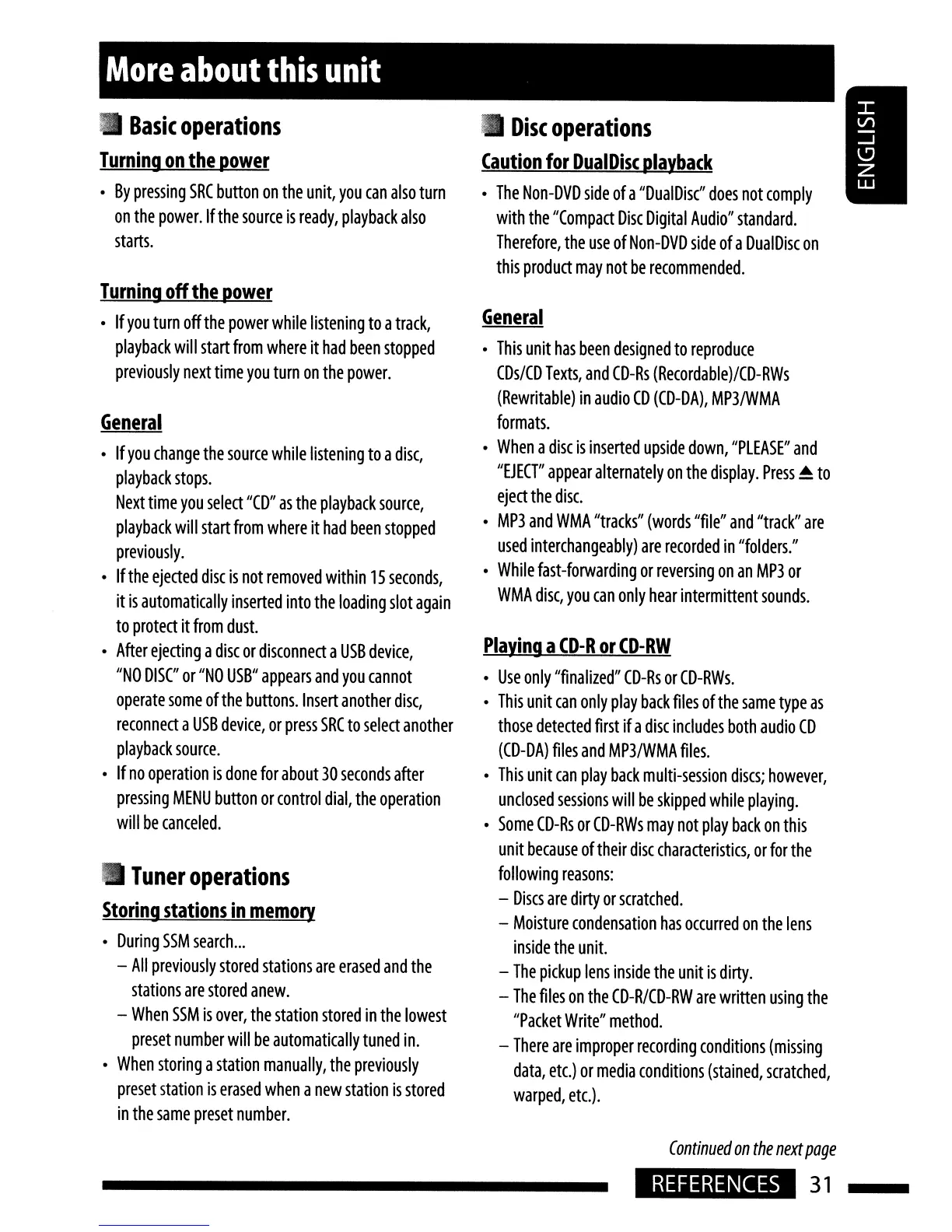 JVC KD·A60S - More about this Unit; Tuner Operations