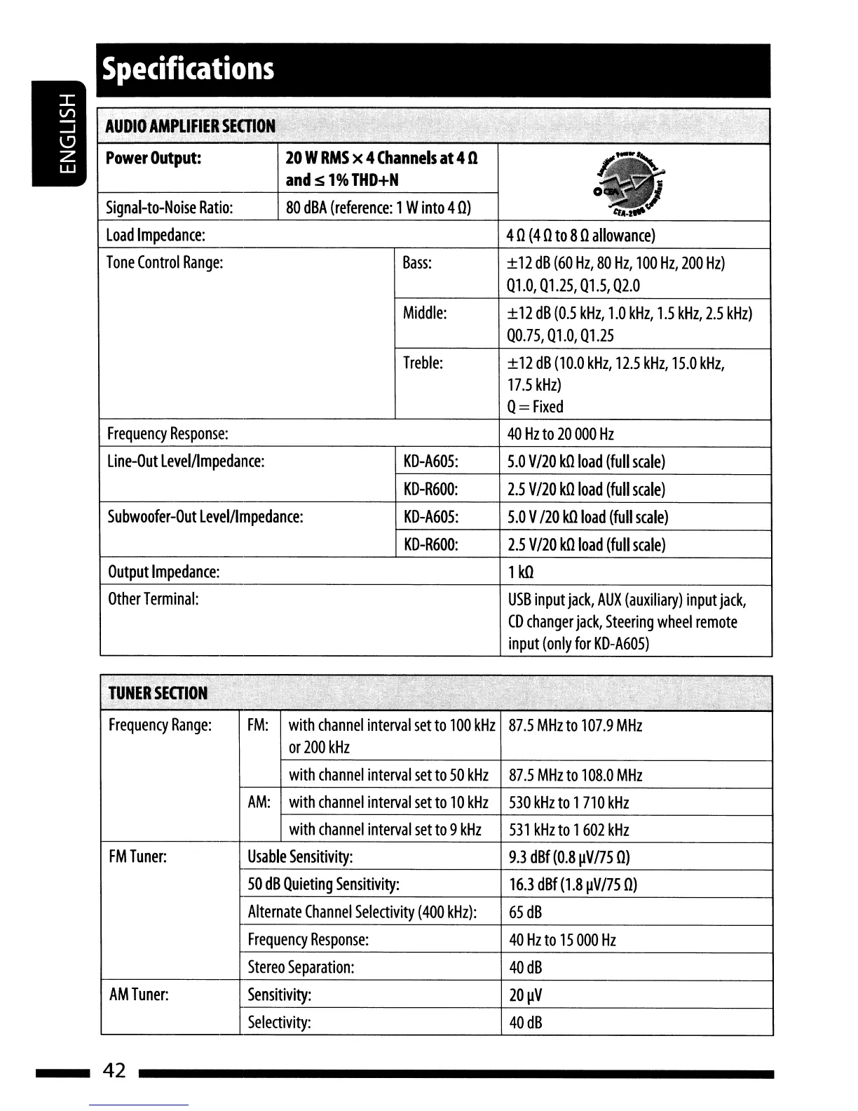 JVC KD·A60S - Specifications