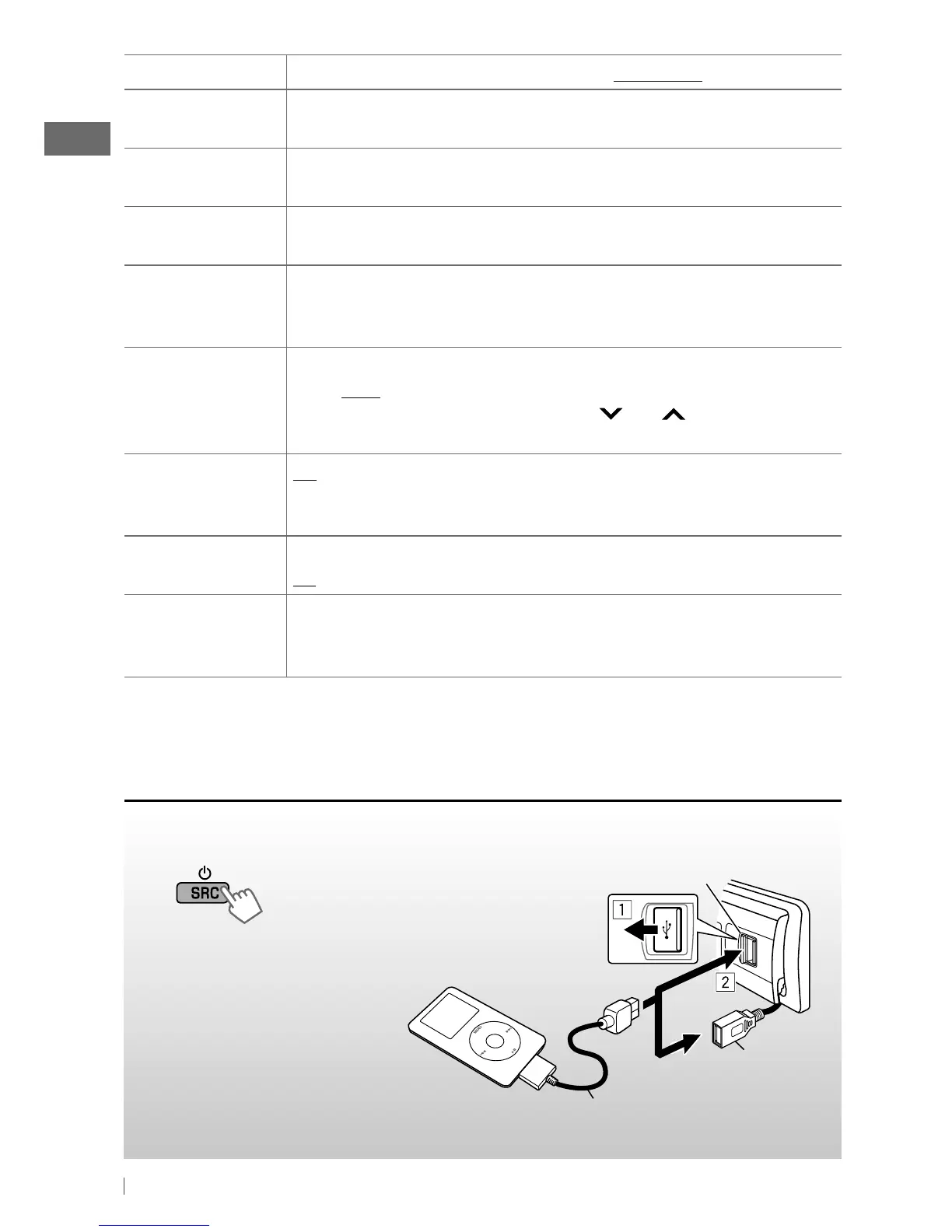 You can connect an Apple iPod/iPhone using the USB 2.0 cable (accessory of the iPod/iPhone) to