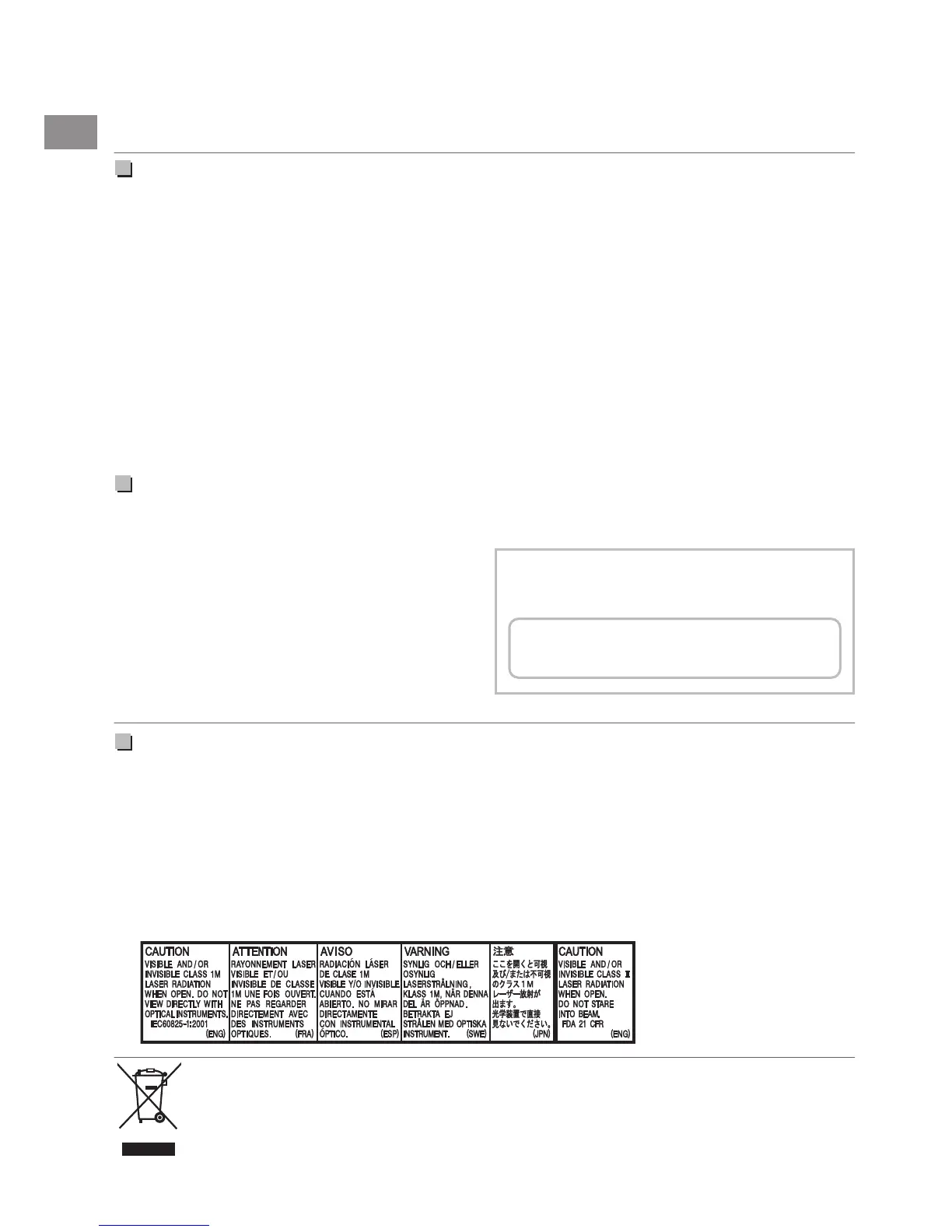 3. CAUTION: (For U.S.A.) Visible and/or invisible class II laser radiation when open. Do