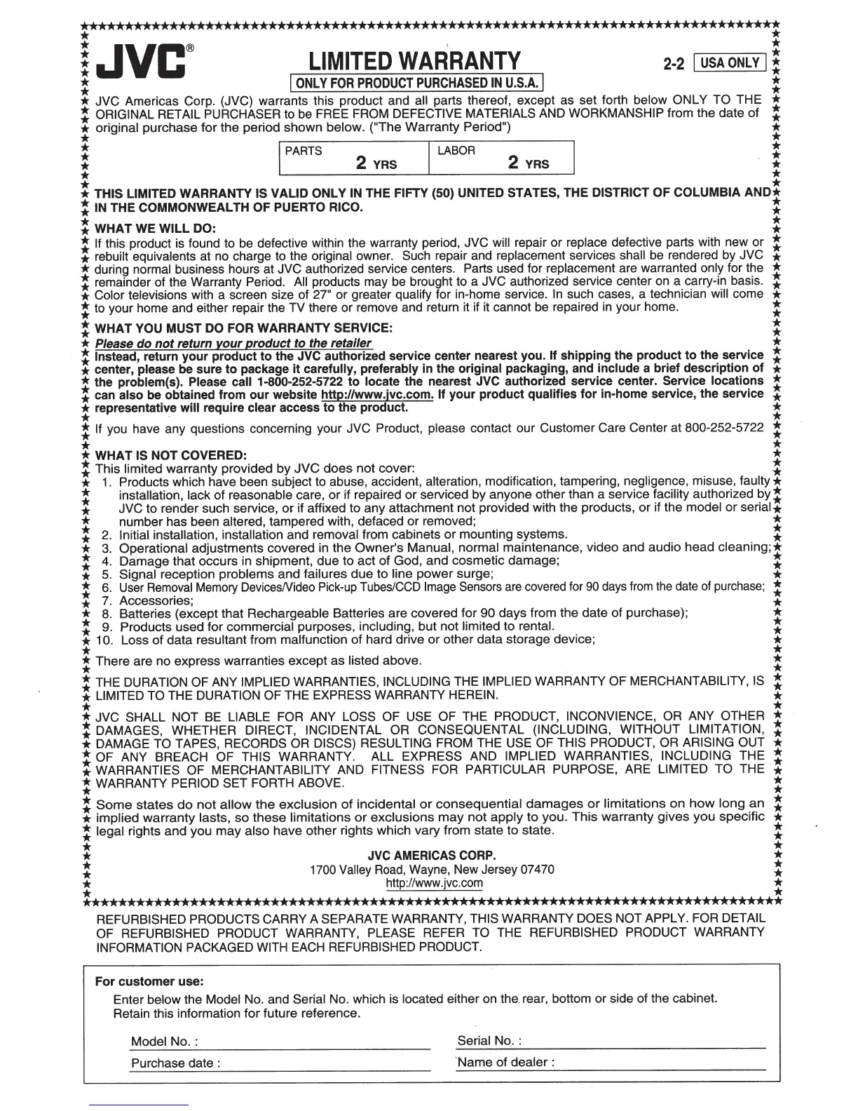 * JVC Americas Corp. (JVC) warrants this product and