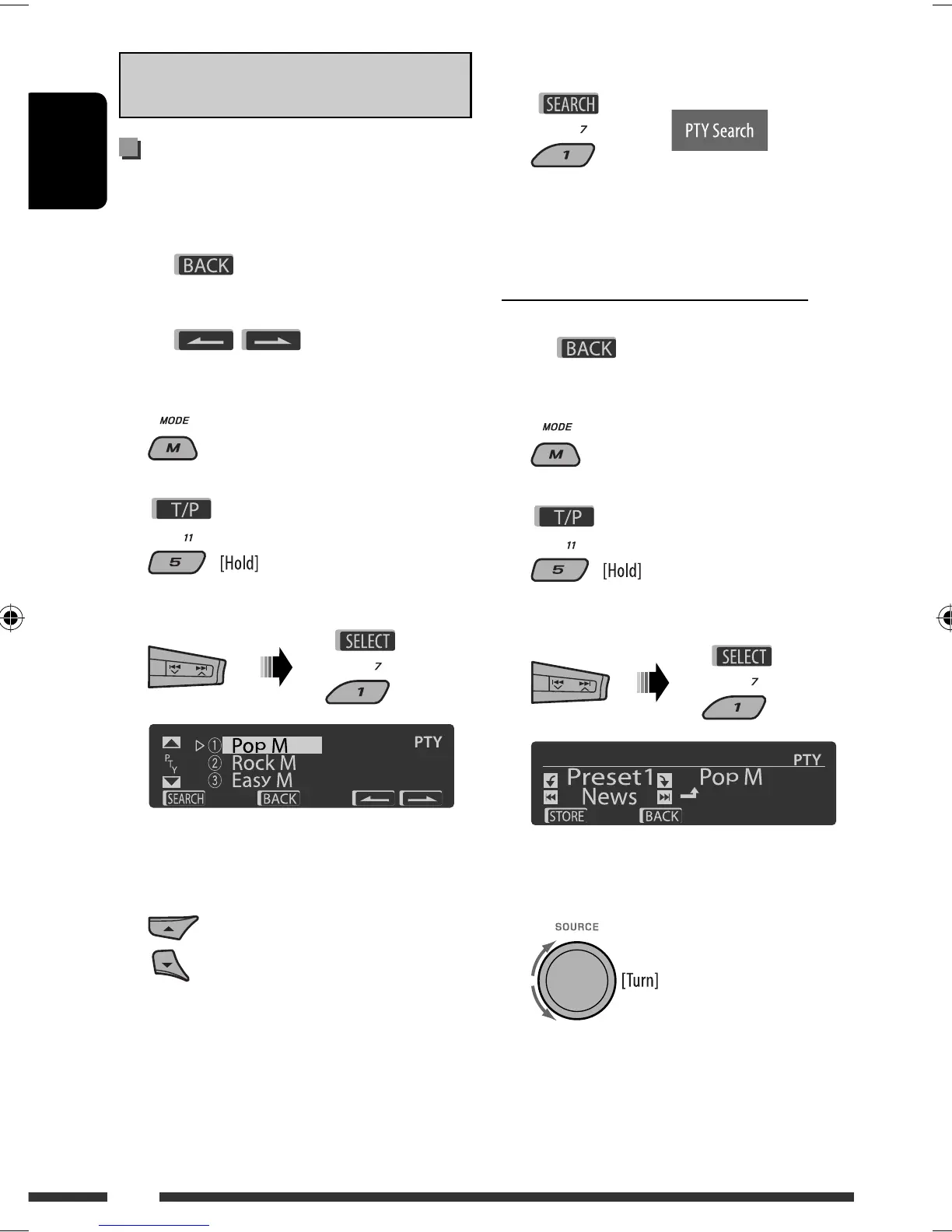 The three preset PTY codes appears on the display.