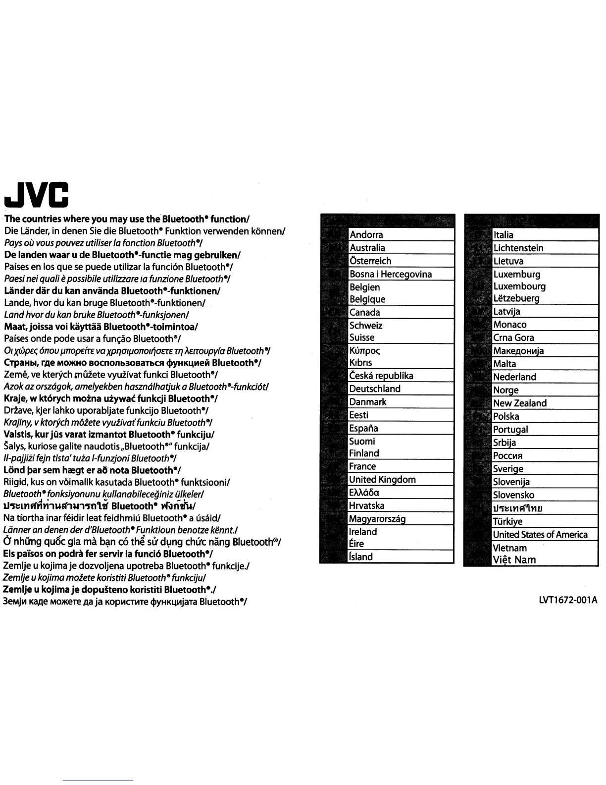 Maat, joissa voi kayttaa Bluetoothe·toimintoa/