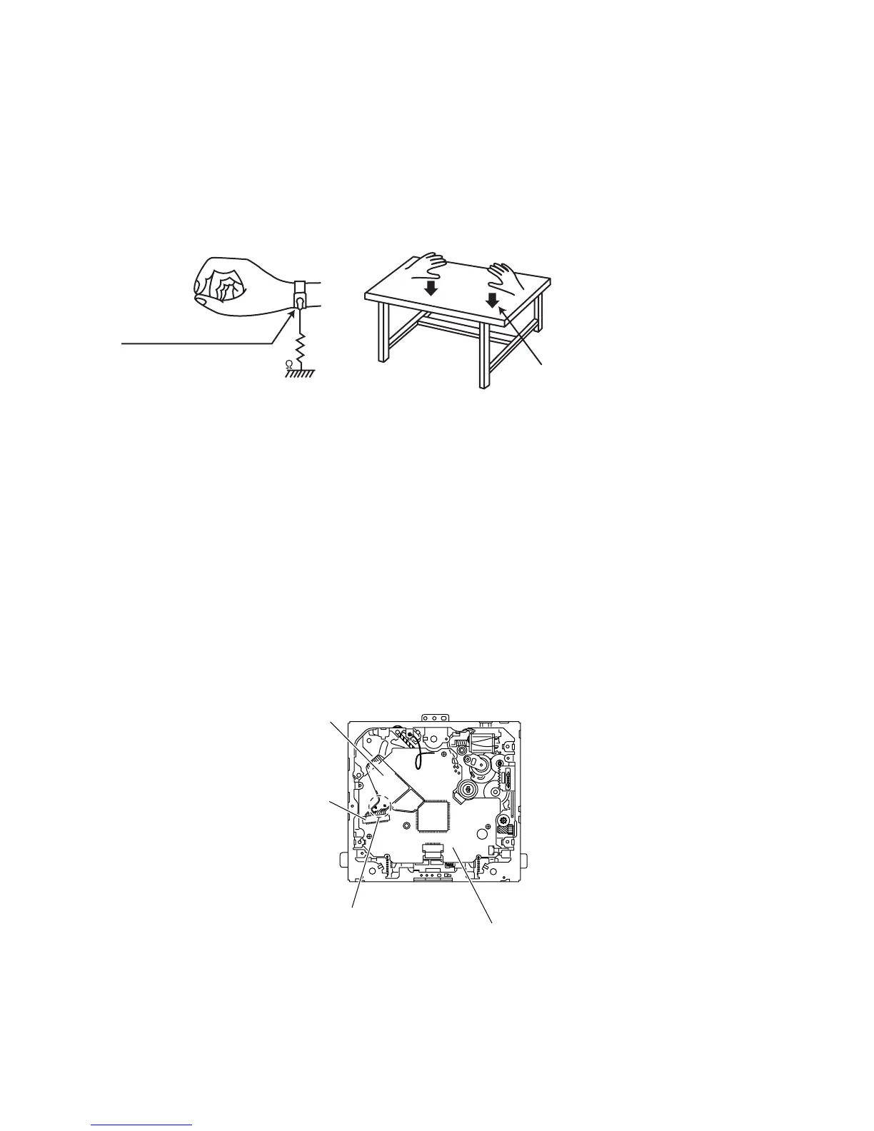 diode in the traverse unit (optical pickup). Take care to prevent this when performing repairs.