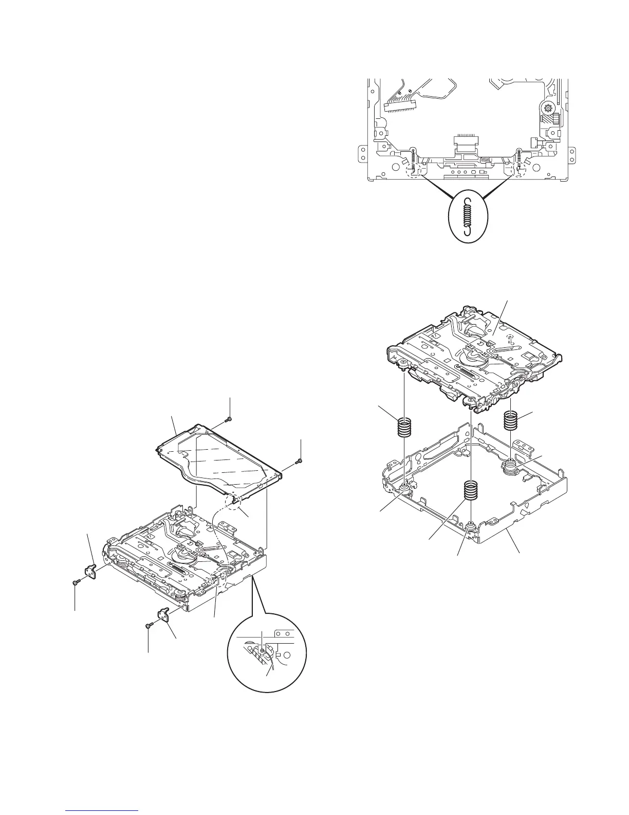 • When reassembling, reattach the damper spring to the
