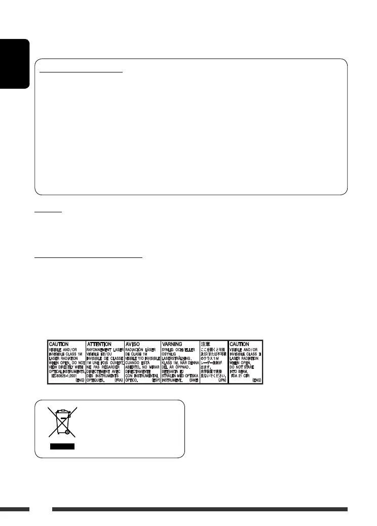 Changes or modifications not approved by JVC could void the user’s authority to operate the equipment.