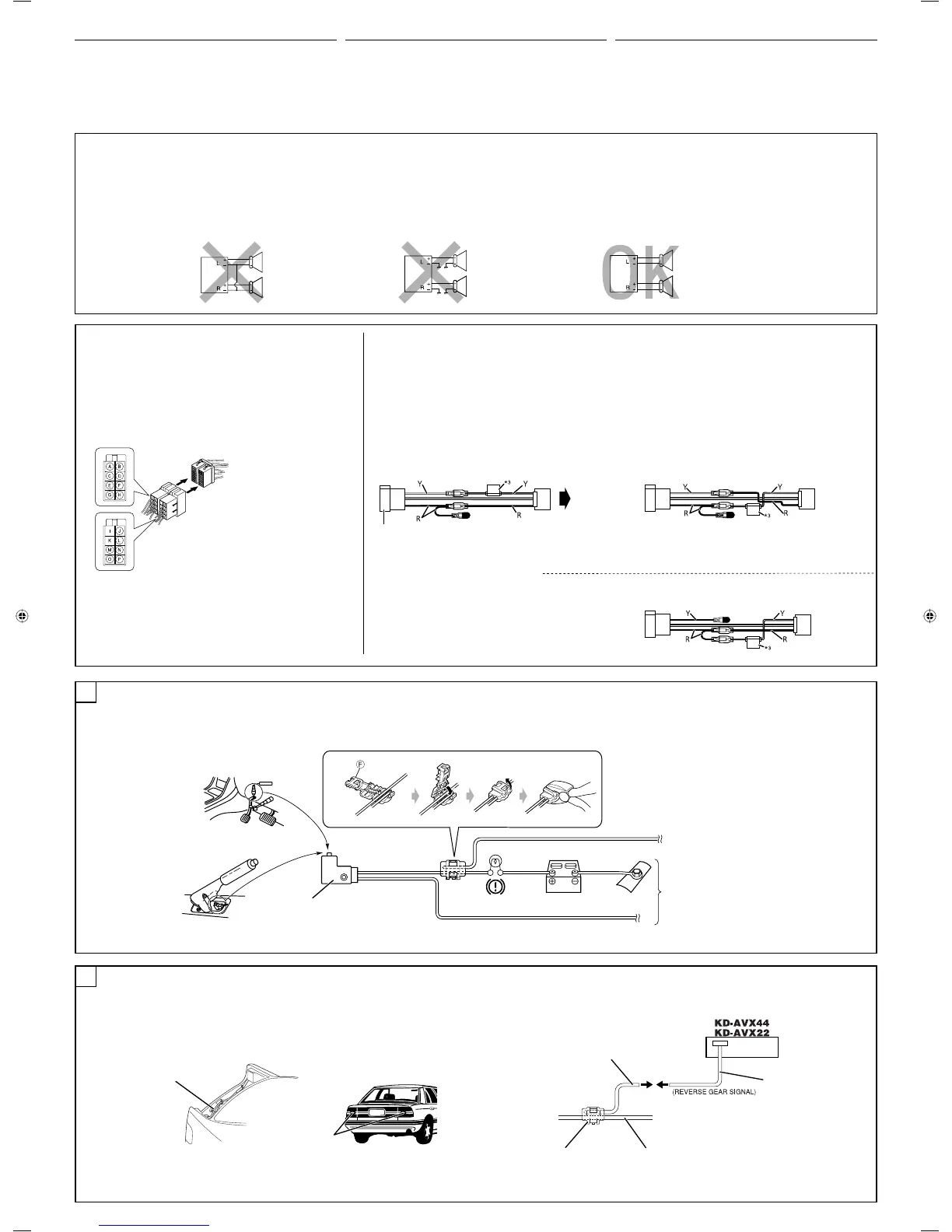 Connecting the reverse gear signal lead (for rear view camera) / Conexión del cable de señal del engranaje de marcha atrás (para cámara de retrovisión) / Connexion du