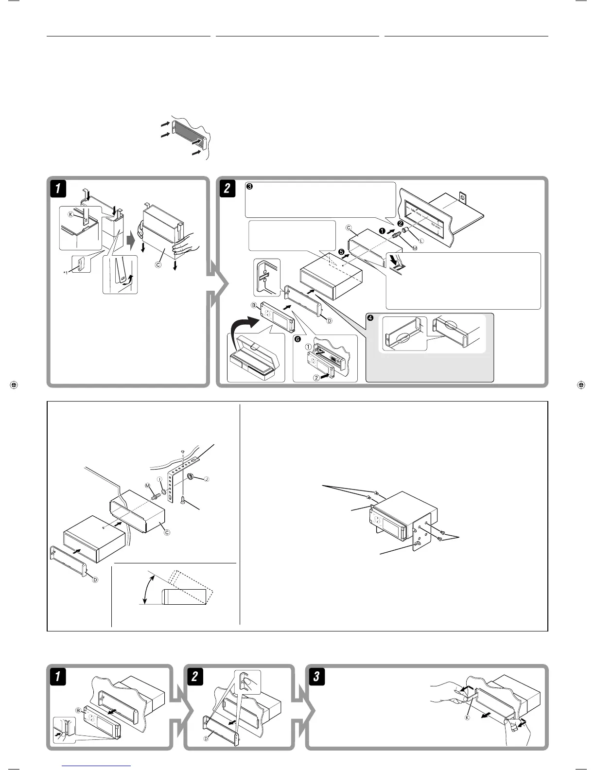 In a car having the “Required space for installation” (see page 1), first remove the car radio and install the unit in its place.