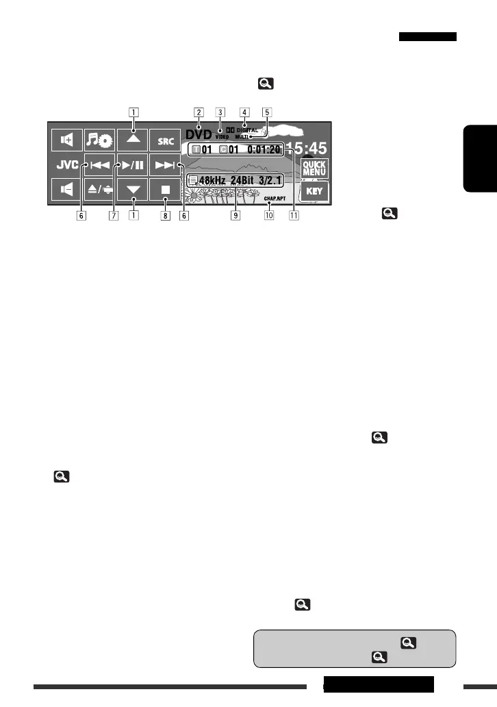 • Во время просмотра воспроизводимых изображений можно отобразить кнопки и информацию,