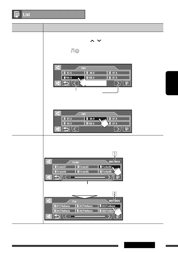 1 Торкніться [BAND], потім [ / ], щоб налаштуватися на станцію/сервіс, які