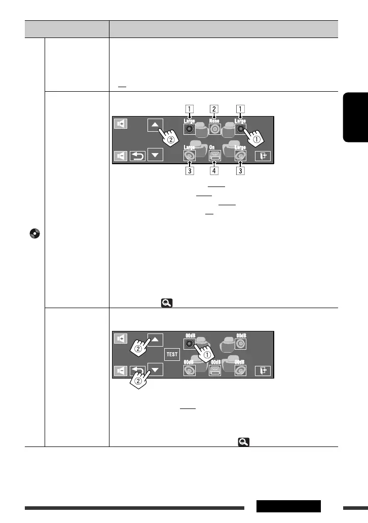 • Размер динамика: <Large> для диаметра не менее 13 см; <Small> для