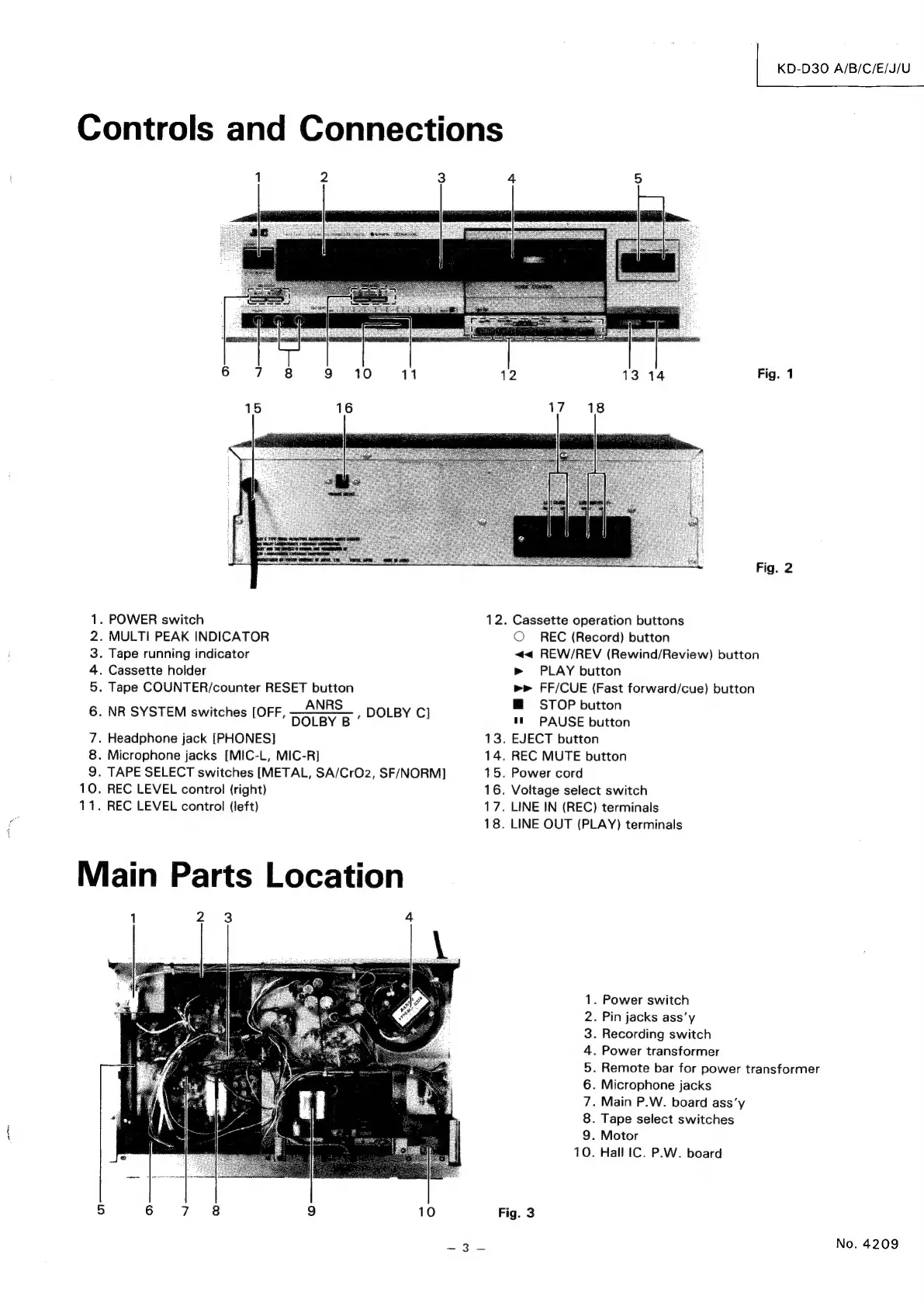 JVC KD-D30 - Controls and Connections; Main Parts Location
