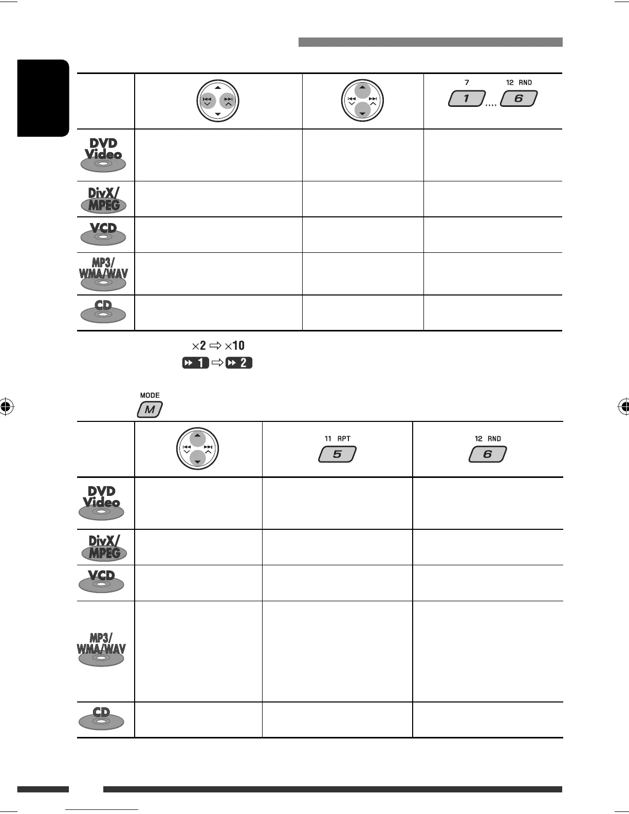 Skip 10 tracks TRK RPT: Repeat current track DISC RND: Randomly play all