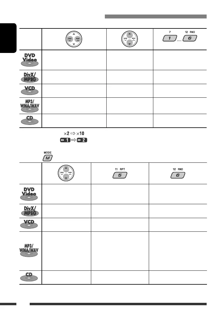 Skip 10 tracks TRK RPT: Repeat current track DISC RND: Randomly play all