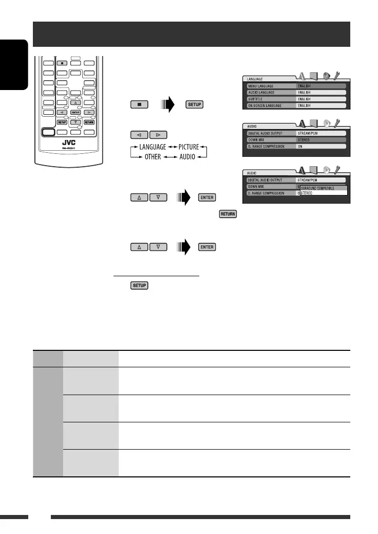 SUBTITLE Select the initial subtitle language or remove the subtitle (OFF). Refer also to
