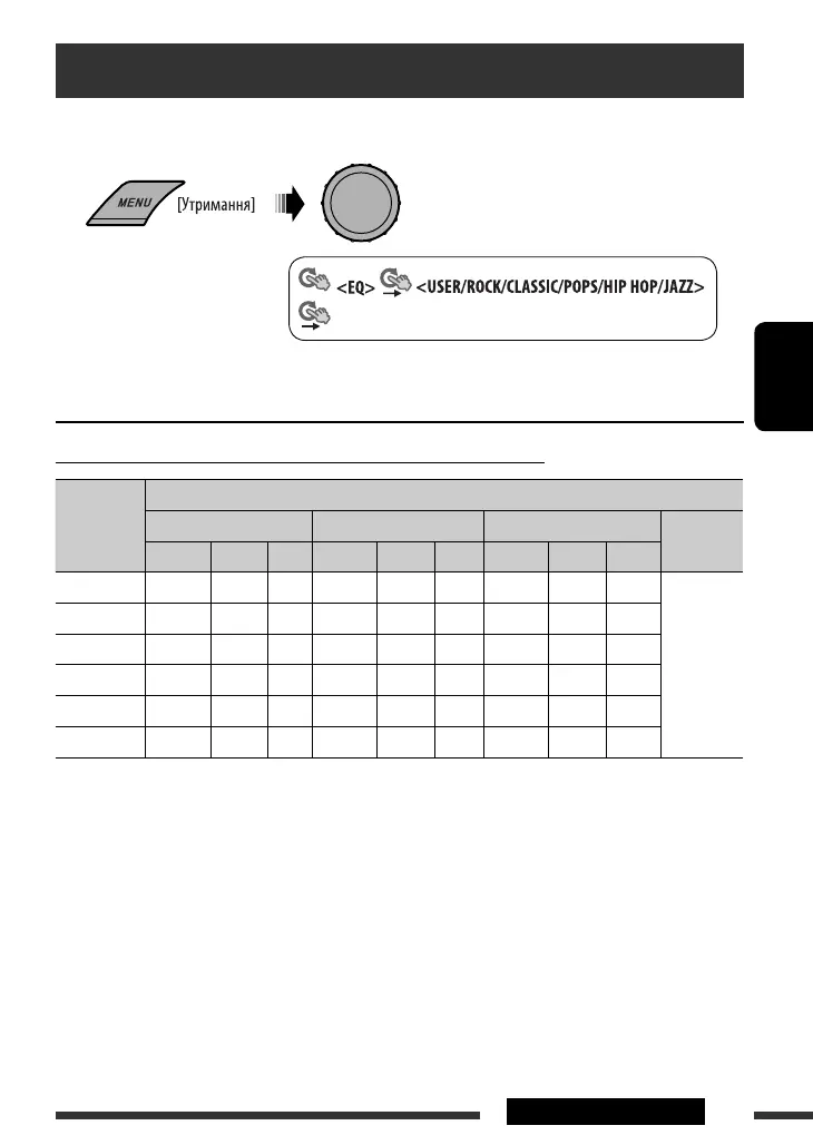 • Щодо налаштувань еквалайзера <USER> (Користувальницький),