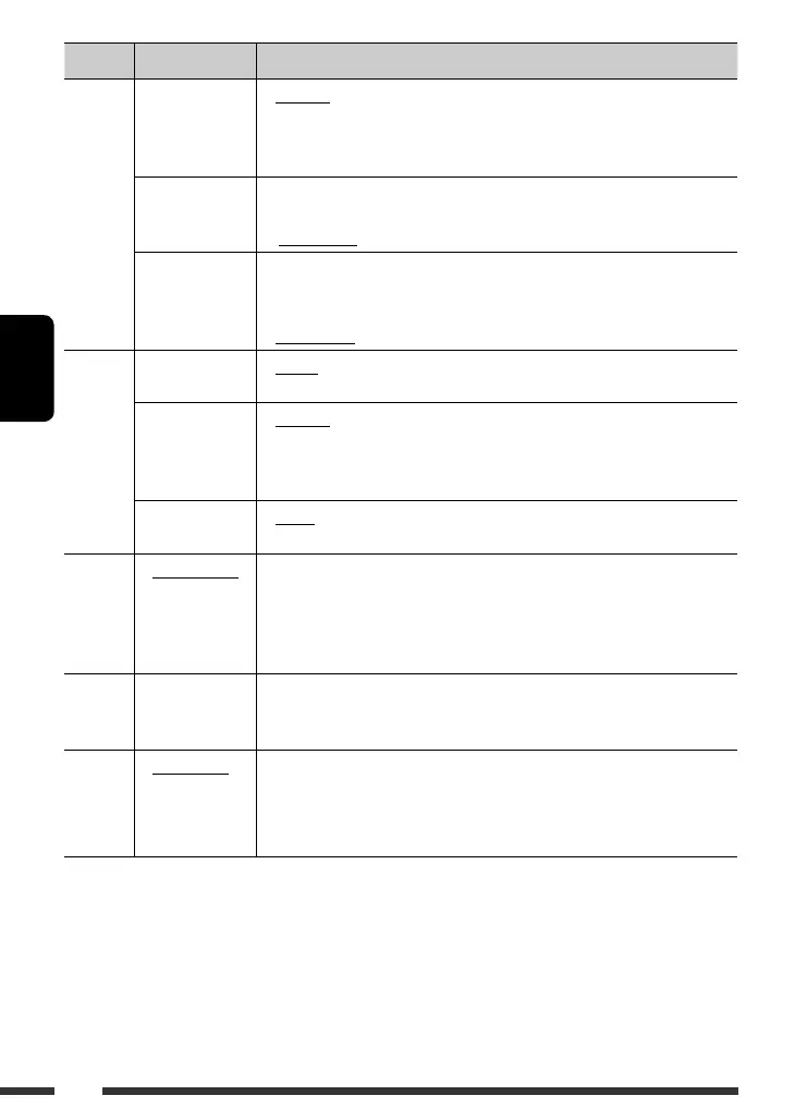Категорія Пункт меню Можливі налаштування, [відповідна сторінка]