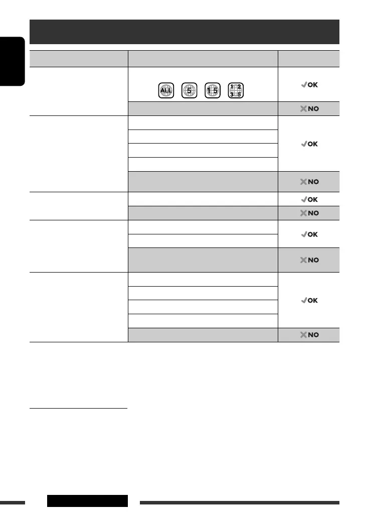 It is possible to play back finalized +R/+RW (Video format only) discs. +RW double layer discs are not playable.