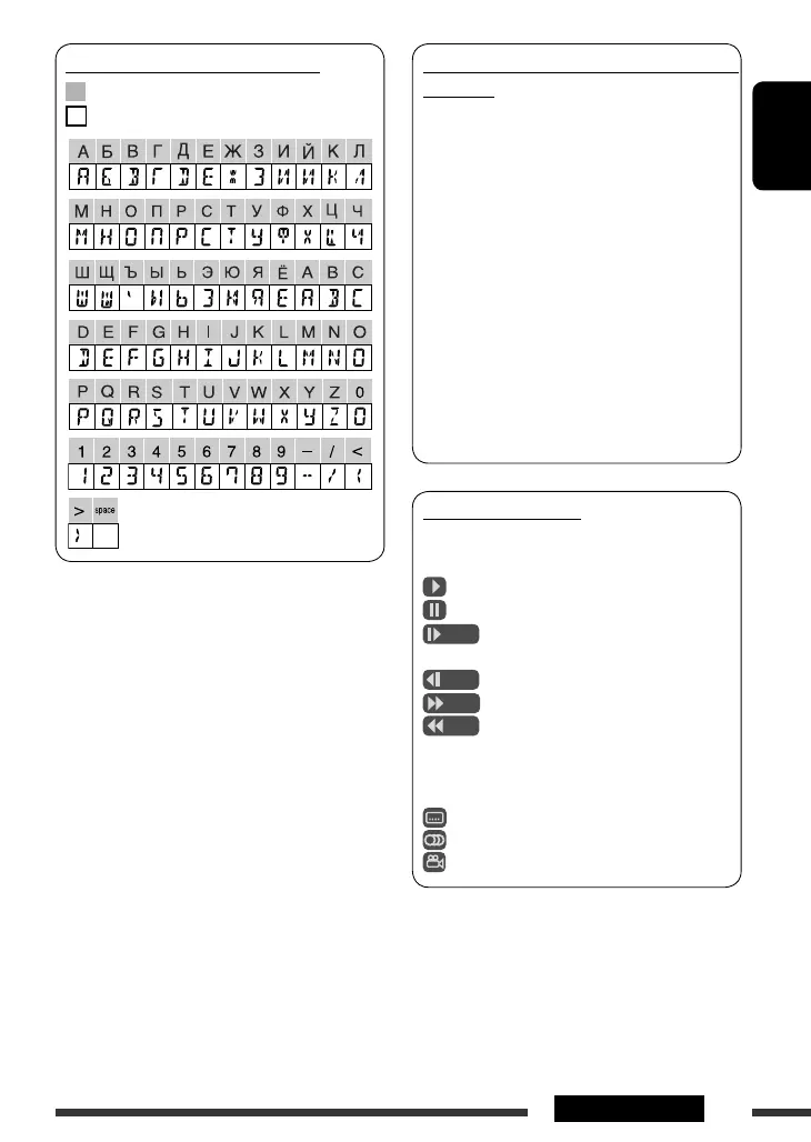 Available characters on the display