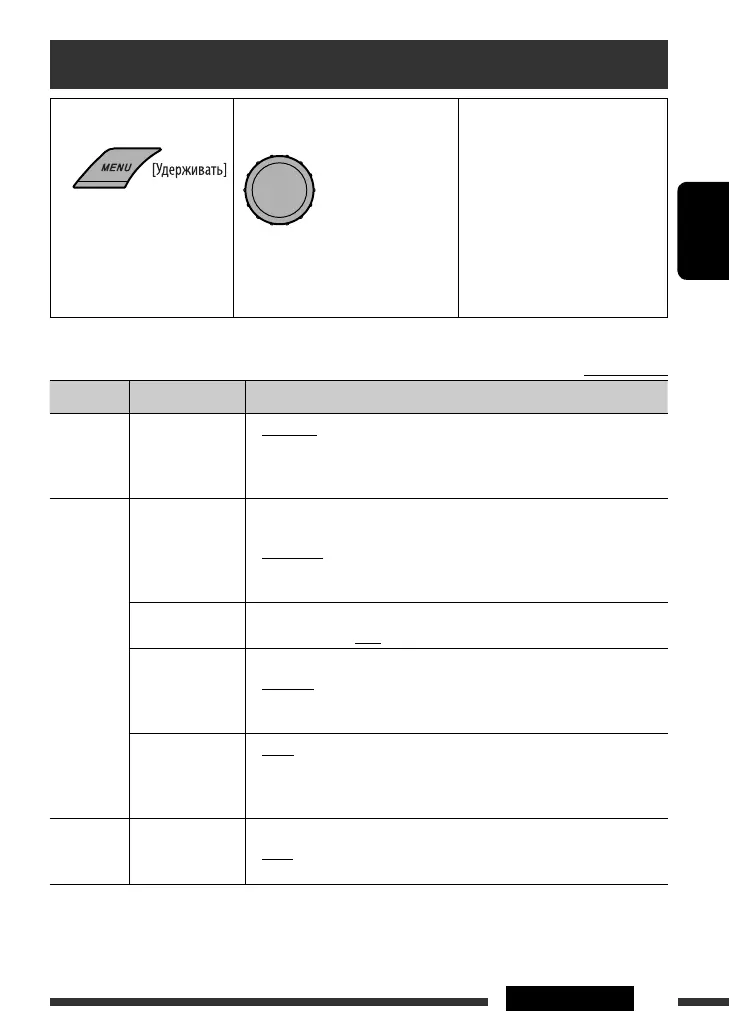 Категория Элемент меню Выбираемая настройка [страница для справки]