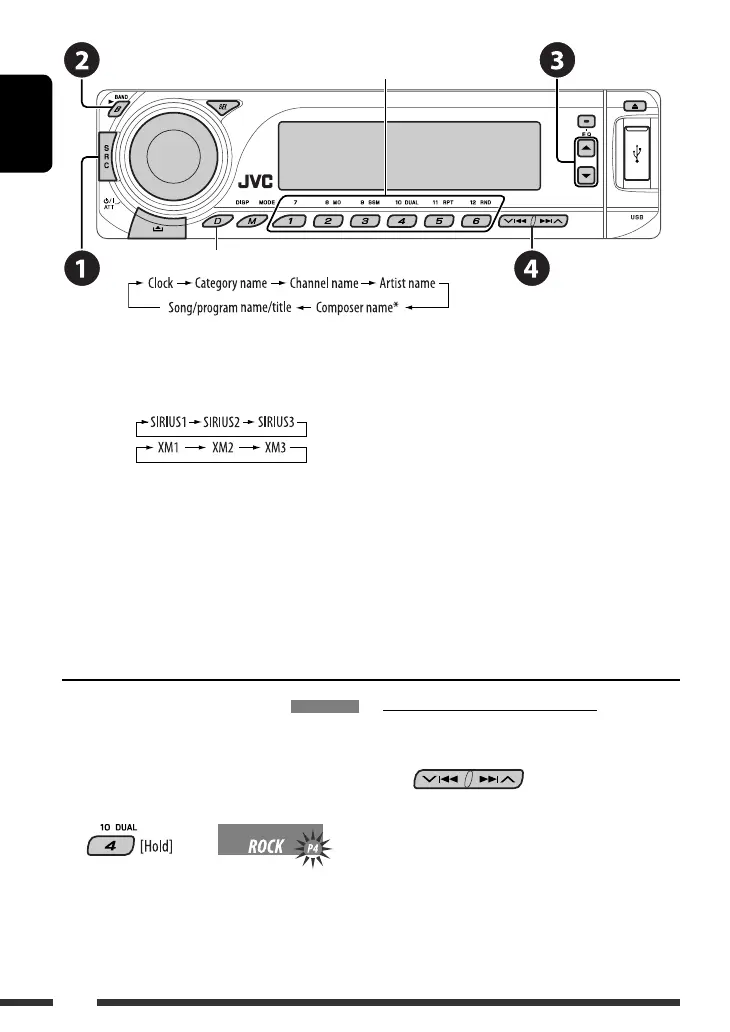 • XM: If you do not select a channel within 15 seconds, category selected in step ! is canceled. You can select