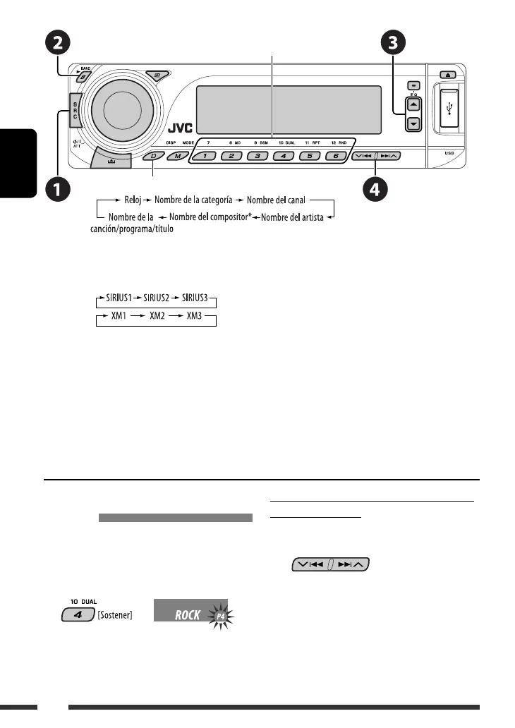 • SIRIUS: Si selecciona “ALL” en el paso !, podrá sintonizar todos los canales de todas las categorías.