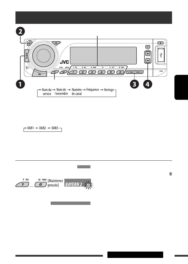 Vous pouvez connecter un tuner DAB JVC à la prise de changeur de CD à l’arrière de l’appareil. Voir aussi page 40.