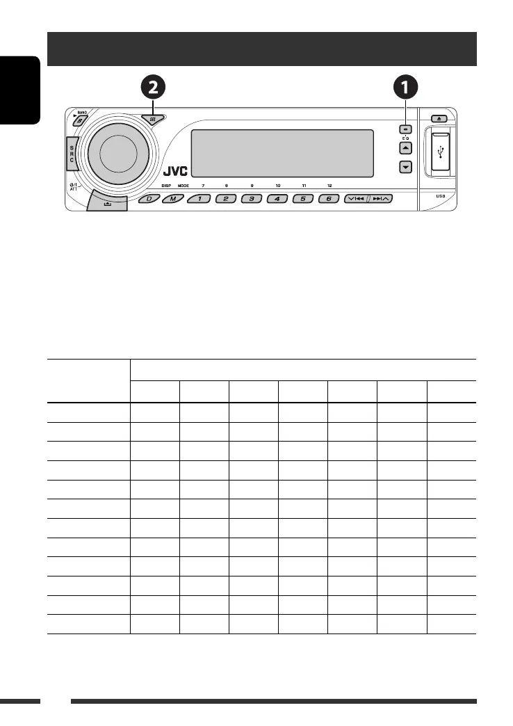 The list below shows the preset frequency level settings for each sound mode: