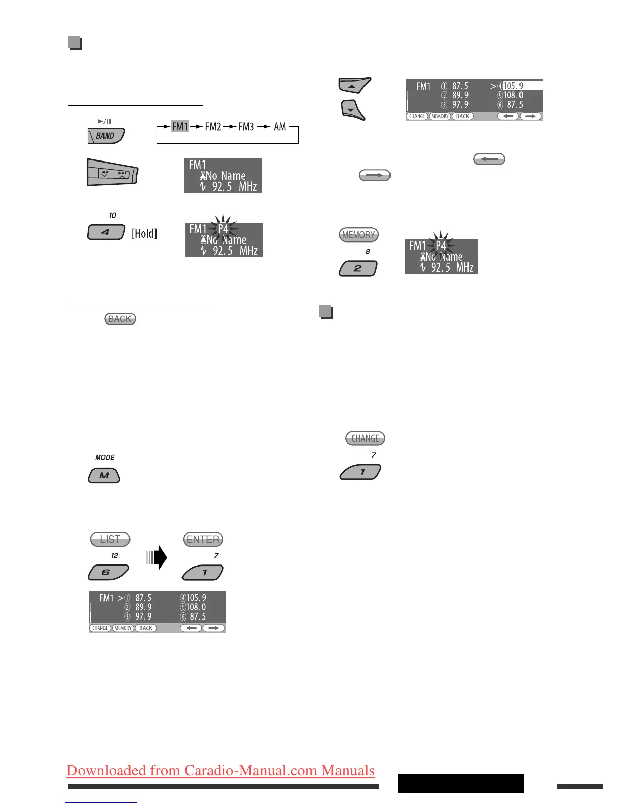 Ex.: Storing FM station of 92.5 MHz into preset number