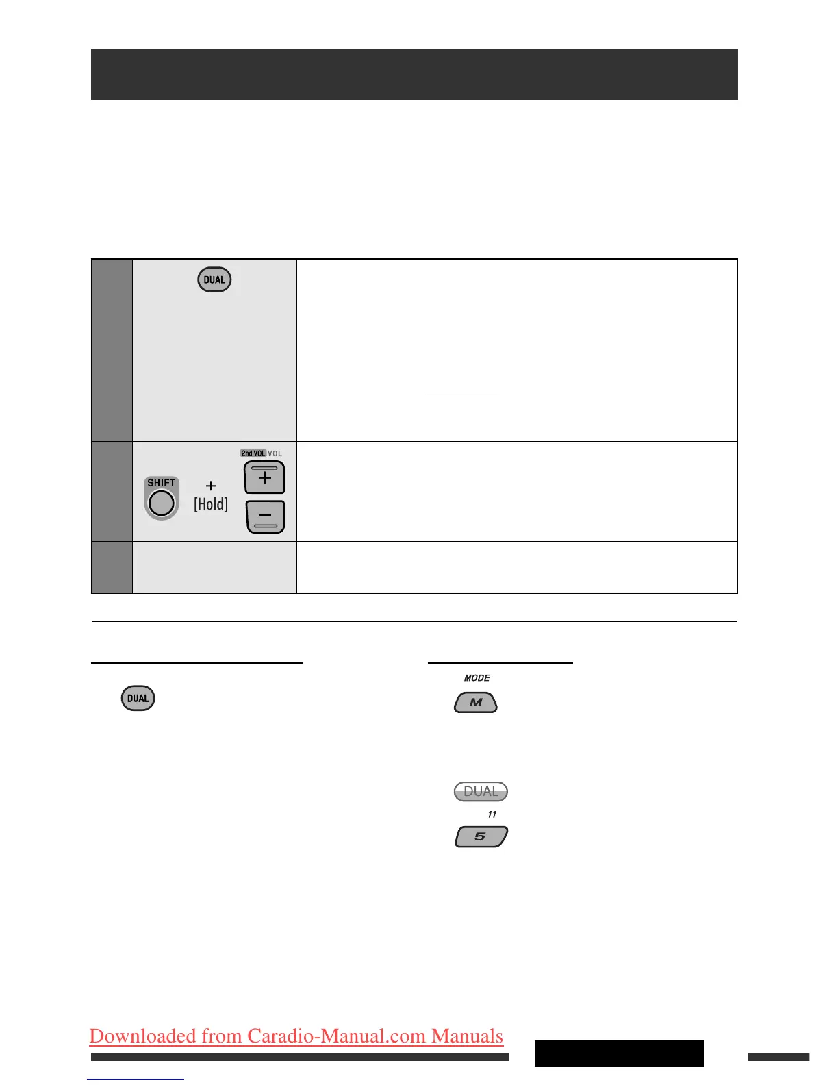 • You cannot select “AM” or “USB” as the source when Dual Zone is activated.