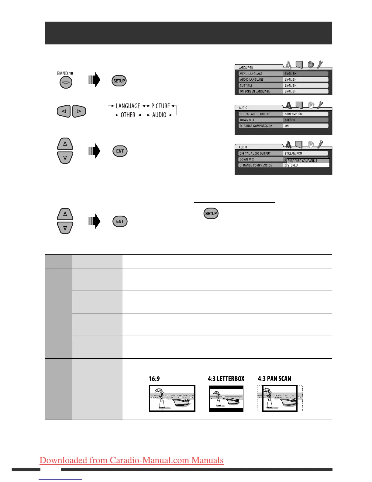 1 Enter the disc setup menu while stop.