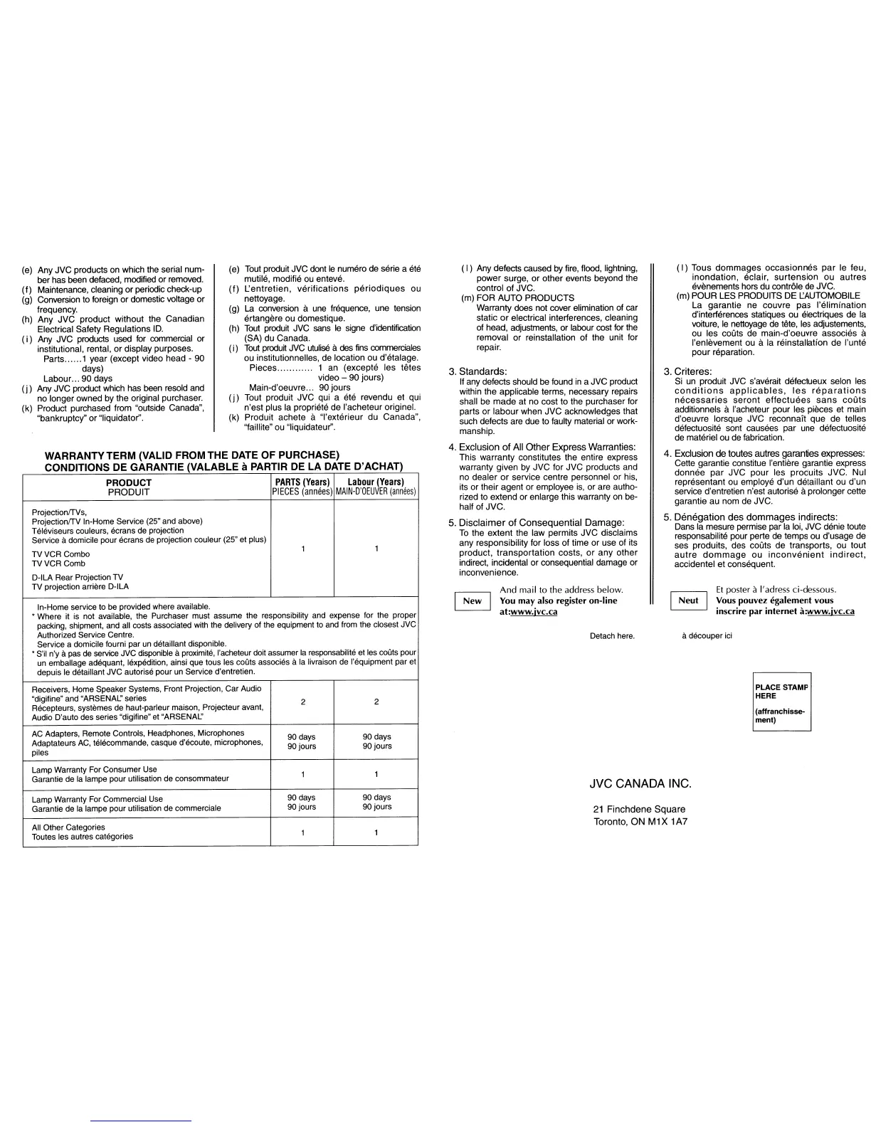 1 year (except video head - 90 ou institutionnelles, de location ou d'etalage.
