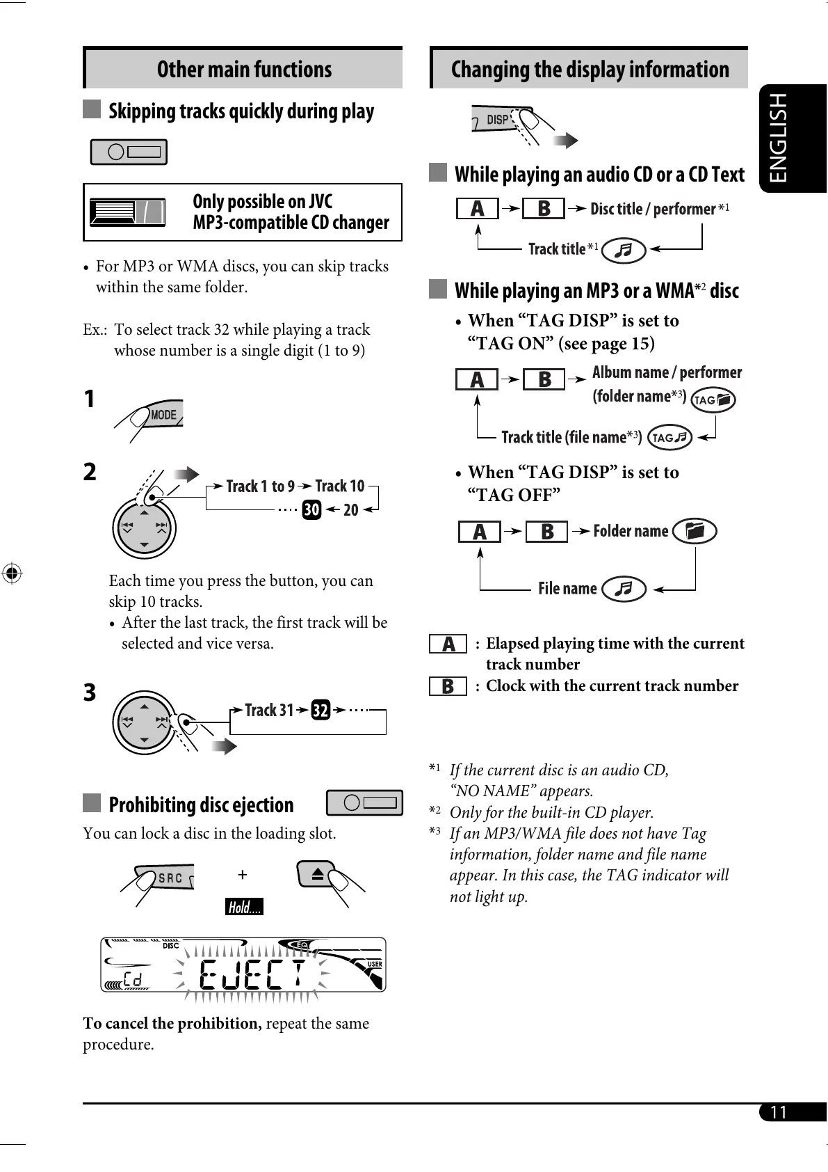 • For MP3 or WMA discs, you can skip tracks