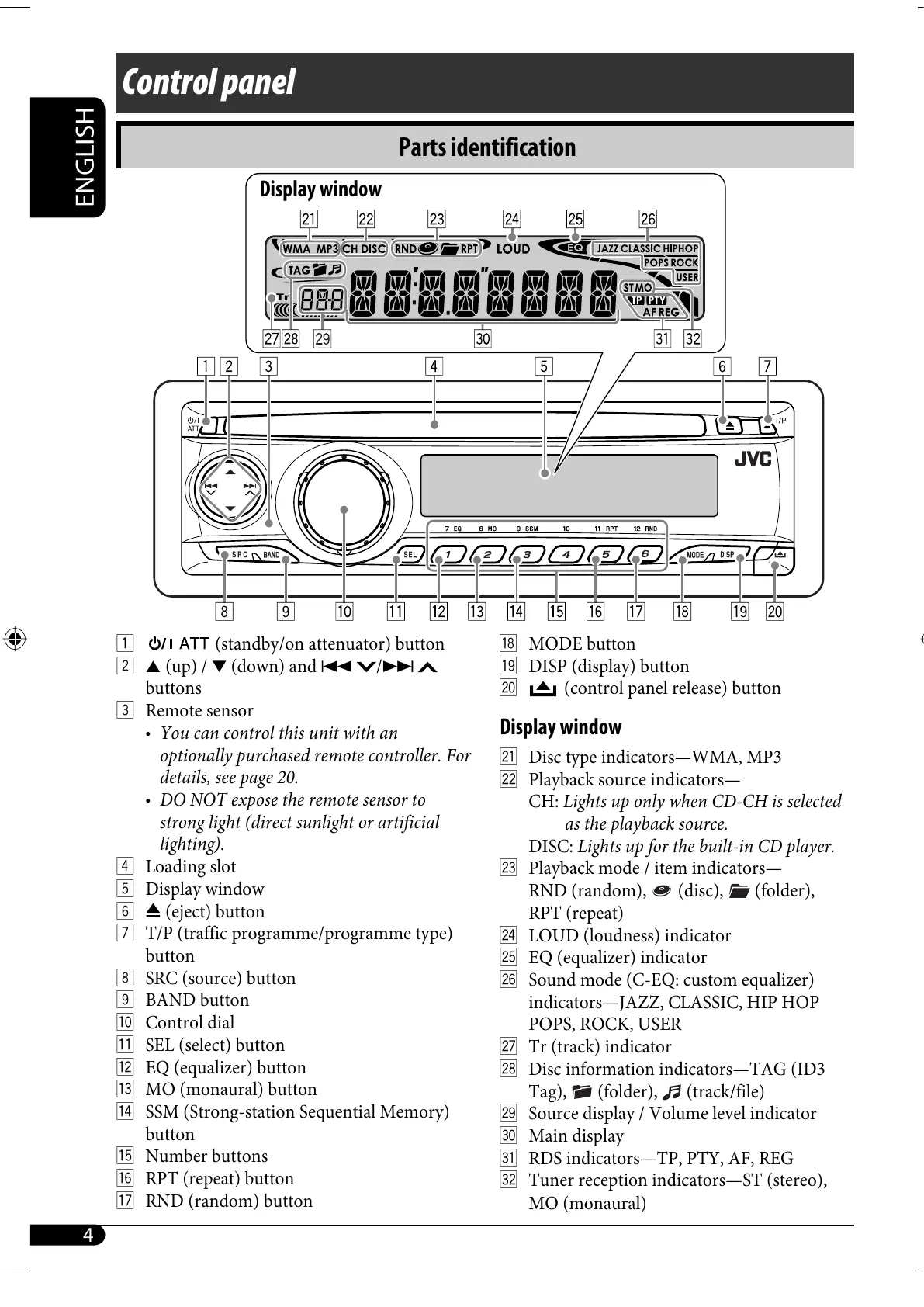 CH: Lights up only when CD-CH is selected