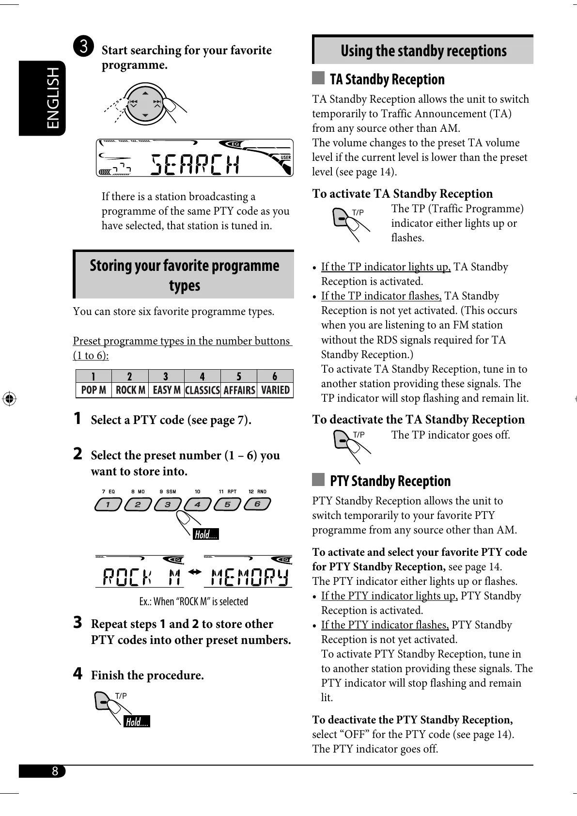 for PTY Standby Reception, see page 14.
