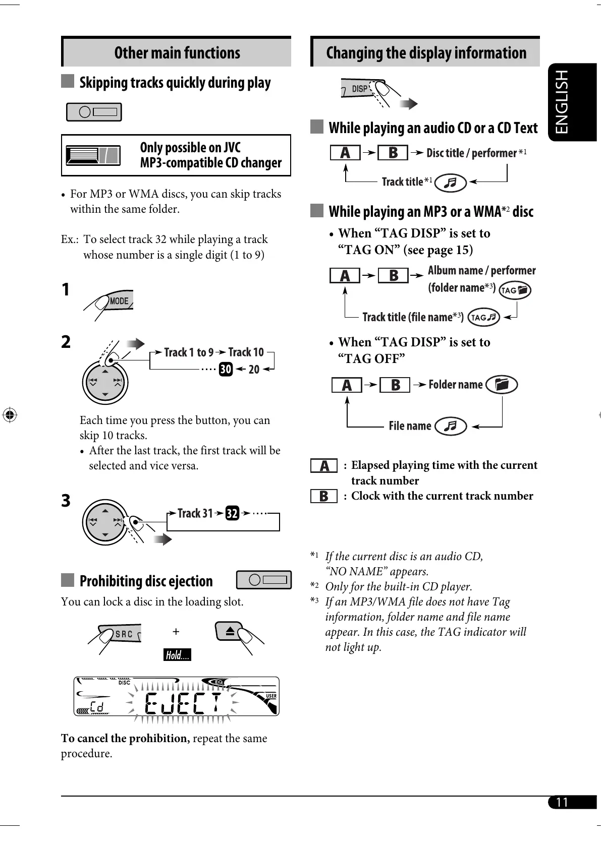 • For MP3 or WMA discs, you can skip tracks